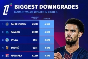 法甲球員身價(jià)下跌榜: