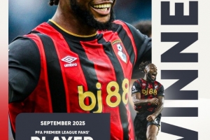 體育資訊10月13日訊 PFA(英格蘭職業(yè)球員工會(huì),Professional Footballers' Association)官方宣布,伯恩茅斯邊鋒塞梅尼奧當(dāng)選球迷票選英超9月最佳球員。