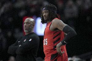 開拓者的兩位傷員羅威和塞布爾今天都一定程度的參與了球隊的訓(xùn)練,比盧普斯說:“他們?nèi)晕茨軌騾⑴c全場對抗訓(xùn)練,但恢復(fù)狀態(tài)還不錯?!?/p>