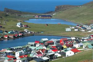 在挪威與冰島之間的茫茫大海上,有18座島嶼如造物主不經(jīng)意間灑落的翡翠,點(diǎn)綴在深藍(lán)色的北大西洋中,這里就是法羅群島(法羅語:F?royar,丹麥語:F?r?erne),丹麥王國(guó)的海外自治領(lǐng)地。1399平方公里的陸地上,陡峭的懸崖如同巨人的階梯,直插洶涌的海面,1117公里曲折的海岸線勾勒出這片土地倔強(qiáng)的輪廓。