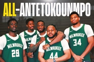 美媒Clutch Points曬出了一張全字母哥陣容的P圖,并寫道:“字母哥的另一位弟弟科斯塔斯目前效力于奧林匹亞科斯,他大哥弗朗西斯在轉(zhuǎn)行踢足球前也打過籃球?!?/p>