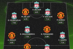 體育資訊10月19日訊 本輪英超將上演曼聯(lián)與利物浦的焦點(diǎn)對(duì)決,數(shù)據(jù)網(wǎng)站W(wǎng)hoscored也盤點(diǎn)了兩隊(duì)球員本賽季英超場(chǎng)均評(píng)分最高陣容,具體如下: