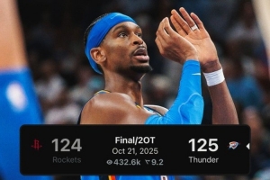 體育資訊10月22日訊 在今天結(jié)束的NBA揭幕戰(zhàn)中,雷霆以125-124戰(zhàn)勝火箭。