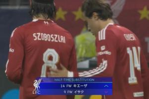 體育資訊10月23日訊 歐冠聯(lián)賽階段第3輪利物浦客戰(zhàn)法蘭克福下半場,利物浦換下伊薩克,換上基耶薩!