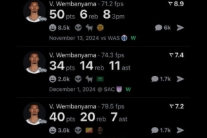 美媒曬出了文班生涯離譜的單場(chǎng)數(shù)據(jù),并寫道:他才21歲!