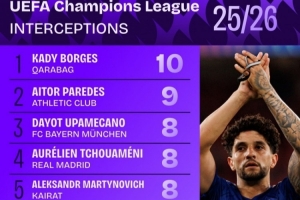 體育資訊10月23日訊 歐冠第3輪已經(jīng)完賽,數(shù)據(jù)機構(gòu)squakwa統(tǒng)計了本賽季至今的歐冠攔截情況,