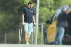 霍安-加西亞被拍到拄著拐杖現(xiàn)身,而能否趕得上10月對皇馬的國家德比,目前似乎非常困難。