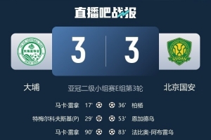 體育資訊10月25日訊 在周中進(jìn)行的亞冠二級(jí)聯(lián)賽小組賽比賽中,北京國(guó)安客場(chǎng)3-3與中國(guó)香港球隊(duì)大埔戰(zhàn)平,