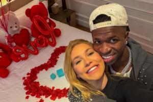 維尼修斯還配文道:“V??V”,意為自己的名字(Vini)和女友的名字(Virginia)。