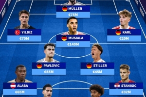 體育資訊10月29日訊 德國轉會市場根據(jù)拜仁青訓出身現(xiàn)役球員的歷史最高身價,列出身價最高陣容,穆勒、穆西亞拉、伊爾迪茲在列。