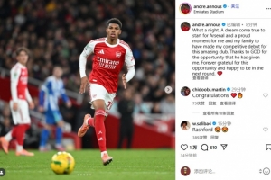 安努斯寫道:“多么美妙的夜晚。為阿森納首發(fā)是夢想成真,我和家人都為我為這家了不起的俱樂部完成正式首秀而感到自豪。感謝上帝賜予我的這個機(jī)會,永遠(yuǎn)感激這次機(jī)遇,并為成功晉級下一輪感到開心。??”