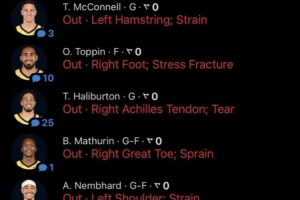 這場比賽堪稱超級(jí)殘陣,一共起名球員缺陣,分別是哈利伯頓、馬瑟林、托平、內(nèi)姆哈德、麥康納、卡梅隆-瓊斯和麥克朗。