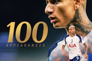 本場比賽理查利森首發(fā)出戰(zhàn),據(jù)統(tǒng)計這也是他在熱刺各項賽事第100次出場里程碑之戰(zhàn),他在此前為球隊貢獻(xiàn)23球11助攻。