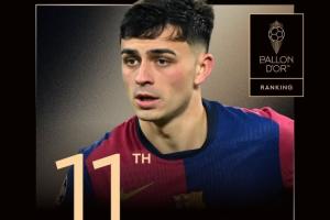 體育資訊09月27日訊 2025年金球獎,巴薩中場佩德里最終排名第11,這一排名在公布時引發(fā)了眾多西媒、球員和球迷的不滿。而今日公布的100位記者投票詳情中,作為唯一有投票權(quán)的西班牙記者,Alfredo Relano最終給佩德里的排名是第9。