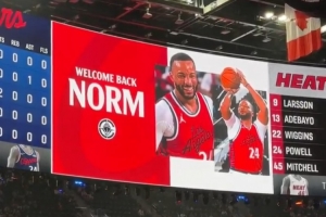 體育資訊11月4日訊 快船主場迎戰(zhàn)熱火,首節(jié)暫停期間,球隊(duì)播放了致敬舊將鮑威爾的視頻,鮑威爾也鼓掌致謝。