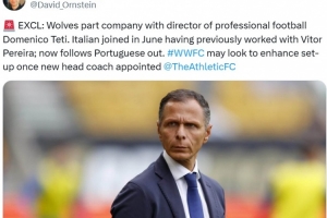 報道稱這位意大利總監(jiān)于今年6月加入球隊(duì),此前曾與主帥佩雷拉共事,現(xiàn)在他跟隨葡萄牙主帥的腳步離開了俱樂部。狼隊(duì)可能會在新任主教練確定后進(jìn)一步調(diào)整球隊(duì)架構(gòu)。