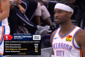 截至發(fā)稿,亞歷山大第三節(jié)4投4中拿到9分,三節(jié)18投10中貢獻24分,這也是亞歷山大連續(xù)第82場得分20+。