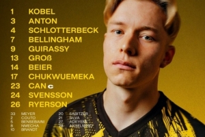 1-科貝爾,3-安東,4-施洛特貝克,7-小貝林厄姆,9-吉拉西,13-格羅斯,14-拜爾,17-丘庫(kù)埃梅卡,23-埃姆雷-詹,24-斯文松,26-萊爾森