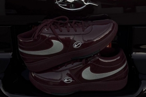 這款雪佛蘭 Impala x Nike Book 1 PE,采用了和他的愛(ài)車(chē)一樣的亮黑色,鞋外側(cè)也加入了車(chē)標(biāo)細(xì)節(jié)。整體主題與他的愛(ài)車(chē)完美搭配。