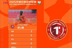上演帽子戲法,遼寧鐵人球員安以恩當選中甲第30輪最佳球員