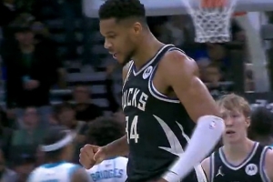 GIF-字母哥一搶三補籃打進還加罰!