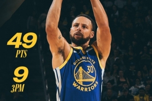 此役,庫里出戰(zhàn)36分03秒,26投16中,三分17中9,罰球8中8,砍下49分4籃板2助攻2搶斷。