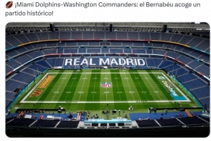 皇馬官方社媒曬出伯納烏球場準(zhǔn)備就緒的照片,配文:“邁阿密海豚vs華盛頓指揮官,伯納烏球場將迎來一場歷史性的比賽?!?/p>