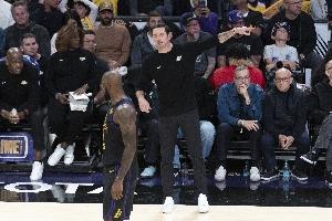 湖人周二的開局迅速加劇了這些質(zhì)疑。詹姆斯的第一個進球——來自一次為他設計的三分戰(zhàn)術——直到第二節(jié)湖人落后7分時才投中。