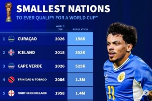 體育資訊11月20日訊 世預(yù)賽當(dāng)前僅剩多個(gè)附加賽名額待定,庫(kù)拉索以15.6萬(wàn)人成為二戰(zhàn)之后晉級(jí)世界杯的人口最少國(guó)家,《轉(zhuǎn)會(huì)市場(chǎng)》也統(tǒng)計(jì)了二戰(zhàn)之后晉級(jí)世界杯人口最少的國(guó)家前十。