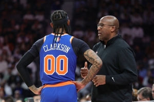上半場比賽中,尼克斯新援克拉克森替補出戰(zhàn)9分47秒,投籃6中2,三分2中0,罰球1中1,得到5分,另有2次失誤,其他數(shù)據(jù)均掛零,正負(fù)值+3。