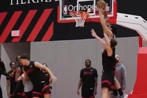 值得一提的是,在昨日的訓(xùn)練中,申京面對(duì)亞當(dāng)斯的防守貢獻(xiàn)了一記暴扣,前者還在社媒曬出暴扣的圖片并@海王,寫道:“就是在你頭上扣籃,你這混球!”