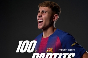 此役是費爾明的諾坎普首秀,也是他為巴薩出戰(zhàn)的第100場比賽,巴薩官方社媒曬出海報,祝賀他達(dá)成巴薩百場里程碑。
