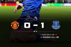 體育資訊11月25日訊 英超第12輪最后一場較量,曼聯(lián)0-1不敵十人埃弗頓。