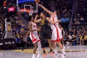 GIF-庫(kù)里不看人腦后分球,理查德后仰壓哨中投!