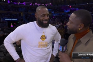 體育資訊11月29日訊 今日,湖人在NBA杯賽中129-119主場擊敗獨行俠。賽前,湖人前鋒詹姆斯接受了NBA名宿韋德的采訪。