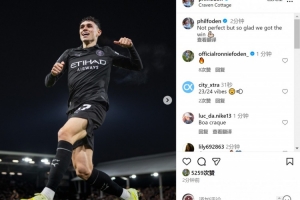 福登社媒曬出慶祝進(jìn)球的照片,并寫道:“并不完美,但很高興我們能取得勝利?!?/p>