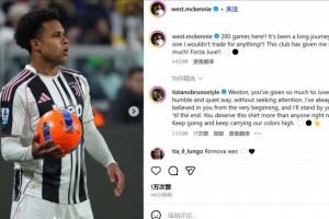 麥肯尼寫(xiě)道:“在這里的200場(chǎng)比賽??!這段旅程很漫長(zhǎng),但我不會(huì)用任何東西去交換!這家俱樂(lè)部給了我太多!Forza Juve?。 ?/p>
