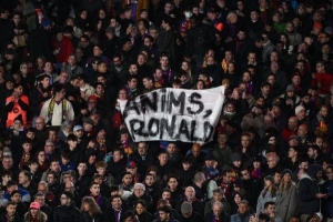 本場比賽,在諾坎普球場內出現(xiàn)了一條球迷專門為羅納德·阿勞霍展示的橫幅。該橫幅上寫著“請振作起來,羅納德”。