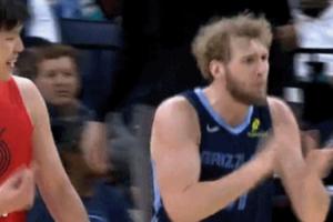 蘭代爾沒接住球,一旁楊瀚森樂了