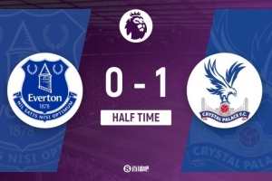 傷停補時2分鐘。上半場比賽結(jié)束,埃弗頓0-1水晶宮。