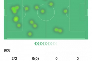 射門2次射正2次,丟失球權(quán)4次,預期進球0.38球