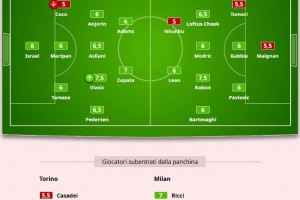 體育資訊12月9日訊 在米蘭客場(chǎng)3-2逆轉(zhuǎn)都靈的比賽后,《米蘭體育報(bào)》為米蘭本場(chǎng)比賽的出場(chǎng)球員進(jìn)行了評(píng)分。