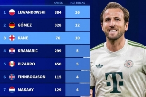 體育資訊12月9日訊 德國(guó)轉(zhuǎn)會(huì)市場(chǎng)盤點(diǎn)了21世紀(jì)德甲球員帽子戲法次數(shù)排名,凱恩10次已經(jīng)來(lái)到第三位。
