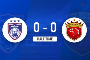 上半場(chǎng)比賽結(jié)束,上海海港0-0柔佛新山。