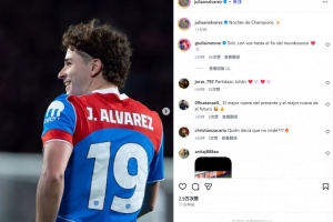 體育資訊12月10日訊 馬競在本輪歐冠3-2險勝埃因霍溫,阿爾瓦雷斯為球隊扳平比分。