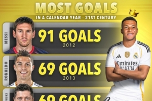 體育資訊12月15日訊 西甲第16輪比賽,姆巴佩破門,皇馬客場(chǎng)2-1擊敗阿拉維斯。據(jù)Score90統(tǒng)計(jì),姆巴佩2025年打進(jìn)63球,排名本世紀(jì)自然年進(jìn)球榜第四位。