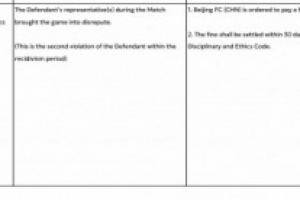亞足聯(lián)官方表示,國安的行為損害比賽聲譽,違反亞足聯(lián)紀律和道德準則第50.1條,這是國安第二次違規(guī),對國安處以6250美元罰款,罰款應自本決定送達之日起30日內支付。