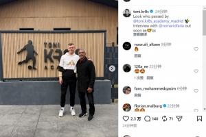 克羅斯社媒曬出合照,配文:“看看誰(shuí)來(lái)青訓(xùn)學(xué)院了?與羅馬里奧的專訪即將發(fā)布?!?/p>