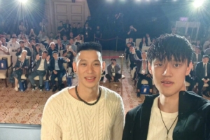 今天,媒體人勇方方曬出了林書(shū)豪和曾凡博的合照,并寫(xiě)道:“嚯!兩任首鋼7號(hào)相聚了!”