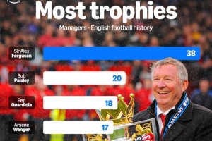 執(zhí)教曼聯(lián)27載奪38冠,弗格森爵士是執(zhí)教英超球隊(duì)奪冠數(shù)最多的主帥